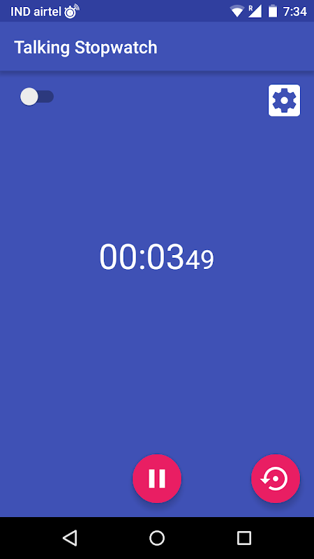 Introducing 'Talking Stopwatch', simple but powerful stopwatch. No need to look at the stopwatch for the time elapsed, the Talking Stopwatch would talk to you about the time elapsed. Counting can be stopped and resumed. The Voice notification interval can be configured.