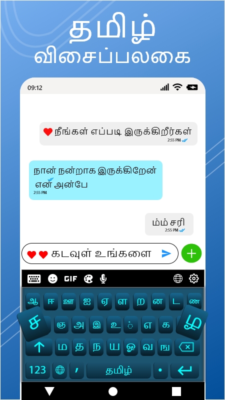 แป้นพิมพ์ทมิฬและการพิมพ์ทมิฬใช้งานได้สองทาง คุณสามารถพิมพ์ภาษาอังกฤษและแป้นพิมพ์ภาษาทมิฬล่าสุดได้ แป้นพิมพ์ทมิฬภาษาอังกฤษที่ชาญฉลาดและไม่เหมือนใครมีคุณสมบัติหลากหลาย มีอีโมจิและธีมในสีต่างๆ บางครั้งอีโมจิทำหน้าที่เหมือนคำพูดและความรู้สึกของคุณ แป้นพิมพ์ทมิฬข้อความอัตโนมัติช่วยคุณได้มากในขณะที่พูดคุยกับเพื่อนชาวอาหรับ แป้นพิมพ์ทมิฬพิมพ์ด้วย harakat มีวอลล์เปเปอร์ที่มีสีสัน