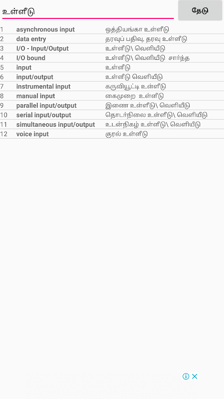 You can find any technical words by entering Tamil or English.