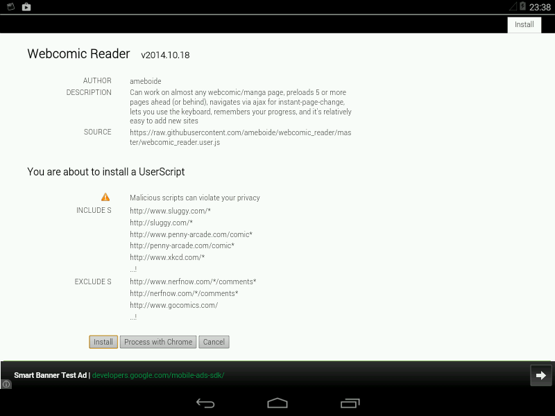 โปรดทราบว่า Tampermonkey สำหรับโลมายังคงอยู่ในสถานะเบต้าเพื่อความมั่นคงอาจขึ้นอยู่กับรุ่น Android และโลมาและการตั้งค่าของคุณ (JetPack, ... )