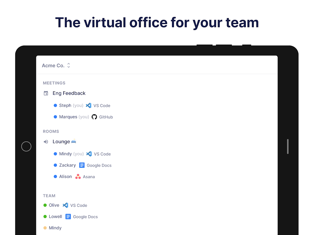Tandem เป็นสำนักงานเสมือนสำหรับทีมของคุณ เชื่อมต่อกับทีมกระจายของคุณได้อย่างง่ายดาย ดูว่าใครอยู่ใกล้ พูดคุย และทำงานร่วมกันในคลิกเดียว