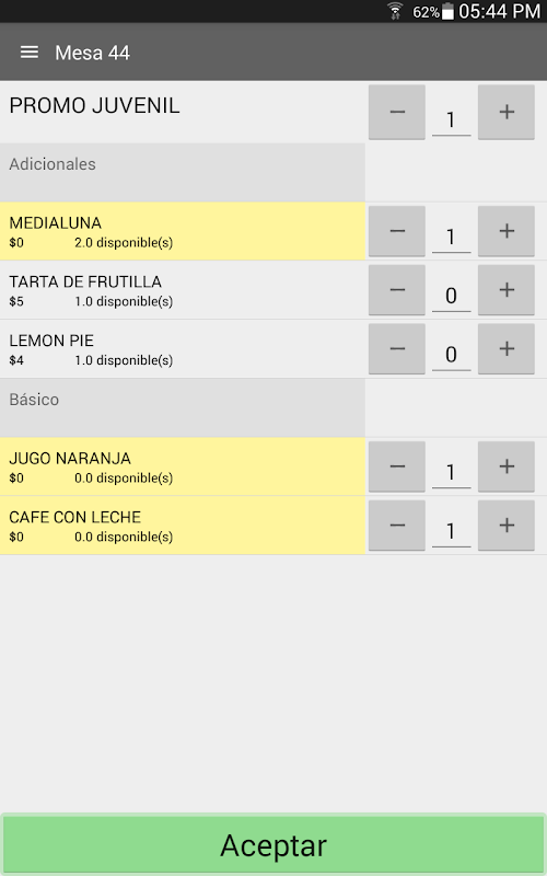 * Para cada artículo podés registrar las preferencias del comensal (cocido, término medio, frio, caliente, etc.)