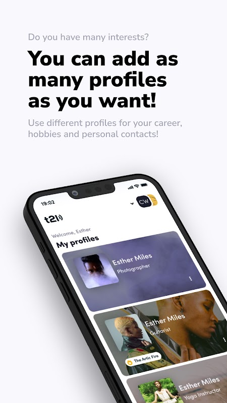 ใช้แอพเพื่อสร้างโปรไฟล์ส่วนตัวได้มากเท่าที่คุณต้องการ แสดงความสนใจทั้งหมดของคุณ ตัดสินใจเกี่ยวกับการออกแบบส่วนบุคคลของคุณ และแบ่งปันข้อมูลที่ถูกต้องกับคนที่เหมาะสมไม่ว่าคุณจะอยู่ที่ใด