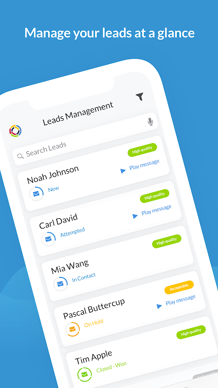 แปลงลูกค้าที่มุ่งหวังมากขึ้นด้วยแอพมือถือ TapClicks Leads Management ที่รวมศูนย์ลูกค้าเป้าหมายขาเข้าทั้งหมดของคุณไว้ที่ส่วนกลางซึ่งสร้างขึ้นในแอพที่ใช้งานง่ายและใช้งานง่ายของเรา