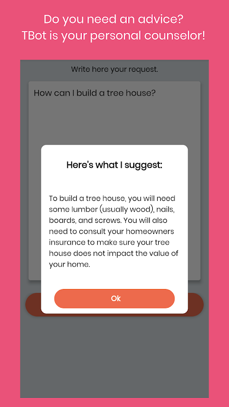 If all that isn't enough, TBot lets you ask for general advice, without any particular formats, whatever you need. You can even chat with TBot! Many more features are coming in the future.
