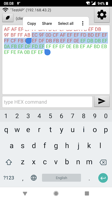 Terminal app to send and receive ASCII text / HEX data to a TCP Socket.