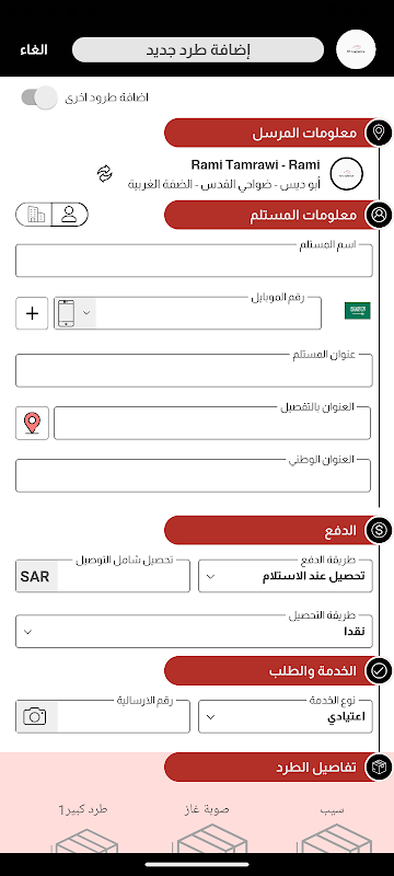 * ادخال الشحنات باستخدام التطبيق