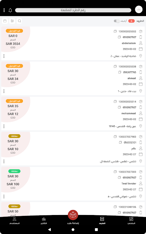 * مراقبة حالة الطرود وتتبع الشحنات