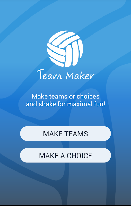 ไม่มีใครอยากเป็นคนกระตือรือร้นและตัดสินใจร่วมกับใครและในเวลาเดียวกันคุณต้องการเริ่มเล่น ASAP! เพียงแค่ใช้ Team Maker ป้อนชื่อเพื่อนและ SHAKE โทรศัพท์เพื่อสร้างทีม!