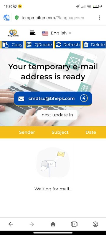 Tempmailgo สร้างที่อยู่อีเมลชั่วคราว 1 ชั่วโมง ด้วยที่อยู่อีเมลชั่วคราวนี้ คุณสามารถสมัครสมาชิกเว็บไซต์ แพลตฟอร์มโซเชียล เช่น facebook, twitter อ่านอีเมลที่ส่งเข้ามา และเปิดใช้งานบัญชีของคุณ อย่าลืมรับลิงก์ที่เข้ารหัสจากส่วนรหัส QR เพื่อใช้ที่อยู่อีเมลสำรองอีกครั้งในภายหลัง