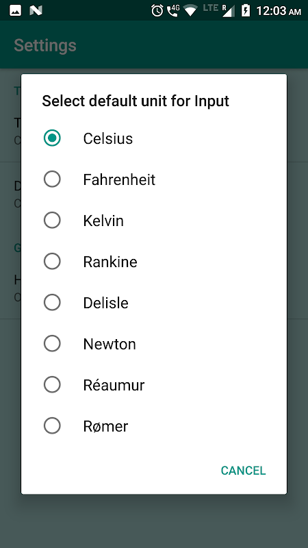 หน่วยที่รวม ได้แก่ เซลเซียสฟาเรนไฮต์เคลวินแรนไคน์เดลิเซิลนิวตันเรโอเมอร์โรเมอร์
