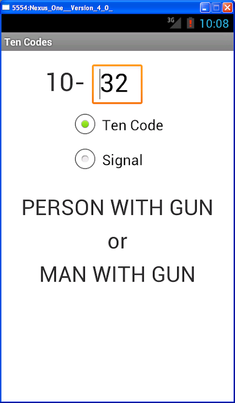 The Ten Codes application is an extremely simple tool. The intended users are the EMS community. It is primarily to enable First Responders to interpret radio communications quickly and easily. It interprets ten codes i.e. 10-4 (ACKNOWLEDGEMENT), 10-20 (LOCATION), as well as signal codes used by law enforcement into common language.