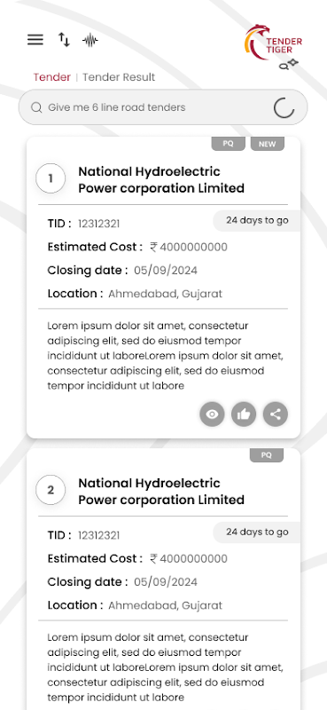 TenderTiger มอบการแจ้งเตือนรายวันและรายละเอียดเกี่ยวกับการประมูลภาคเอกชนและระหว่างประเทศ รวมถึง RFP, RFQ, การคัดเลือกเบื้องต้น, EOI เป็นต้น ซึ่งมาจากทั่วโลก รวมถึงโอกาสที่ได้รับเงินทุนจากหน่วยงานพหุภาคี ธนาคารพัฒนา และแหล่งข้อมูลสาธารณะที่ได้รับการยืนยัน