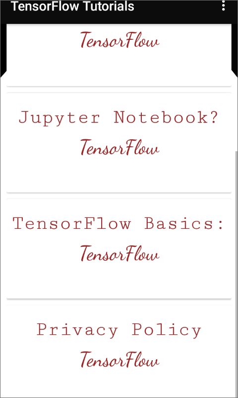 This FREE app will help you to understand Tensorflow Programming Language properly and teach you about how to Start Coding using Tensorflow. Here we are covering almost all Classes, Functions,