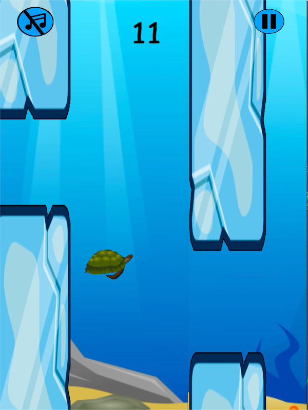 Terrified Turtle, A fun adventure game, Swimming through many ice obstacles trying to avoid them as you gain points! World linking high score board lots of competition! Swim, hop, and float! Do it all in this new exciting app! Terrified Turtle is about a turtle who terrified of hitting the cold ice. While the turtle is swimming through a dangerous variety of floating ice. You must stay on keeping this turtle swimming to miss these floating objects. Pressing anywhere on the screen will get you to stay a float, but don't let the turtle run into any ice! Good Luck!