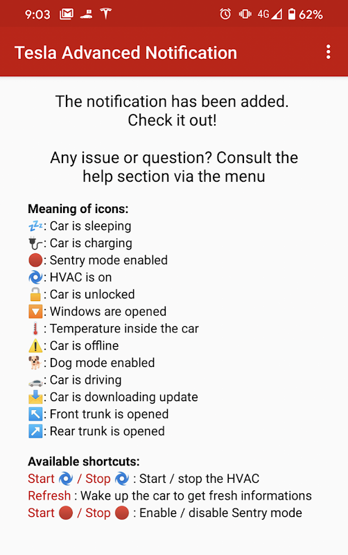 แอปพลิเคชั่นนี้นำเสนอการแจ้งเตือนที่เป็นประโยชน์พร้อมสถานะรถยนต์สถานะแบตเตอรี่ล่าสุดและสถานะการชาร์จโดยไม่ต้องปลุกรถ!