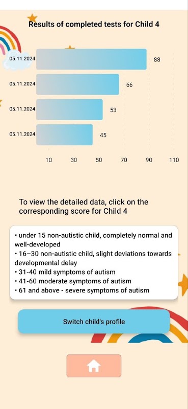 การทดสอบมุ่งเน้นไปที่แง่มุมต่างๆ ของชีวิตเด็ก เช่น ทักษะทางสังคม การสื่อสาร ลักษณะพฤติกรรม และการตอบสนองทางประสาทสัมผัส แอป "Autism Fast Check" ช่วยให้เข้าใจความต้องการเฉพาะของแต่ละบุคคลด้วย ASD อย่างลึกซึ้งยิ่งขึ้น และให้คำแนะนำที่เหมาะสม
