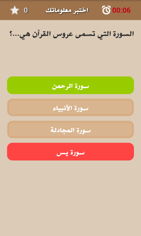 This is one of the Arabic Culture test game with question and answer on the general culture, different types
