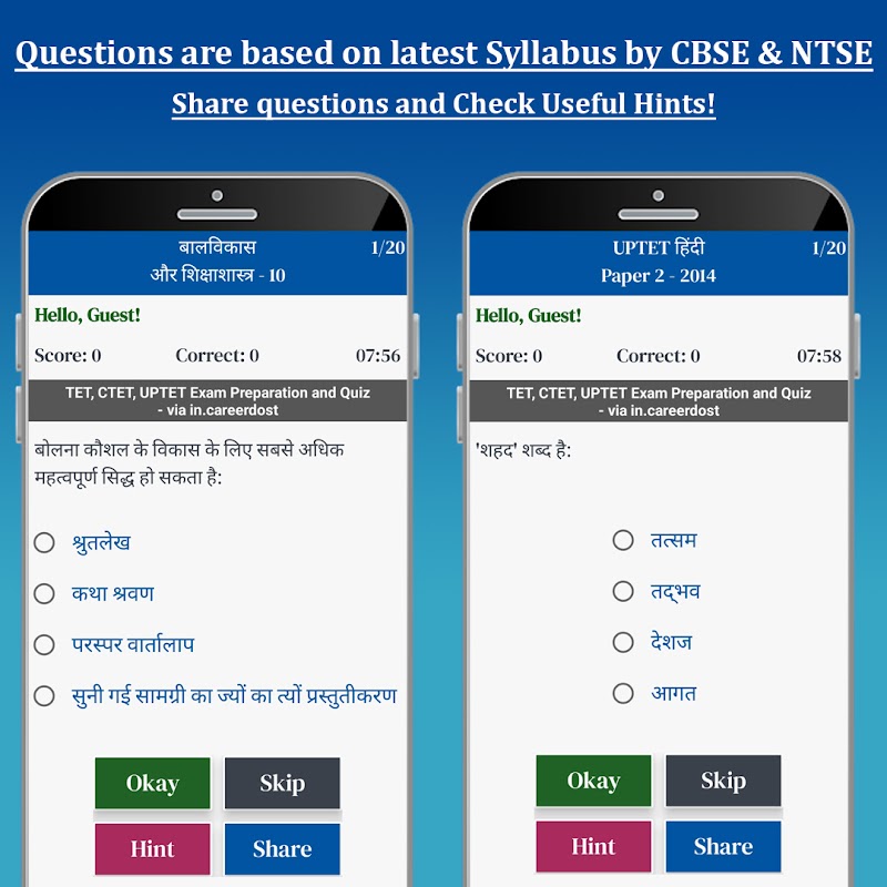 แอพนี้เป็นแอพทดสอบเตรียมสอบสำหรับ CTET, UPTET, SUPER TET, B.ed และการสอบครู