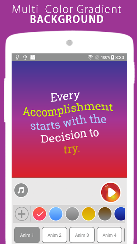 To make best text animation video intro by this Text Animation : Video YT Intro Maker and inspire your friends with different quality fonts, text color, back ground animation and music player.