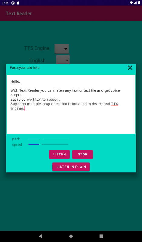 Text Reader เป็นแอปที่อ่านข้อความและไฟล์ข้อความ วางข้อความบางส่วนหรือเลือกไฟล์ข้อความเพื่อรับเอาต์พุตเสียง