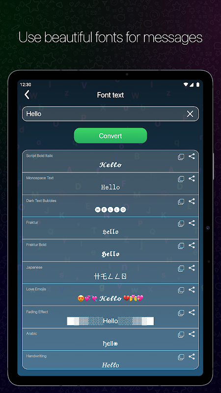 เพียงคัดลอกผลลัพธ์แล้วนำไปใช้ได้ทุกที่ ไม่ว่าจะเป็นในข้อความ บนโซเชียลมีเดีย หรือในเอกสาร แบ่งปันความคิดสร้างสรรค์ของคุณอย่างรวดเร็วและสะดวกสบาย!