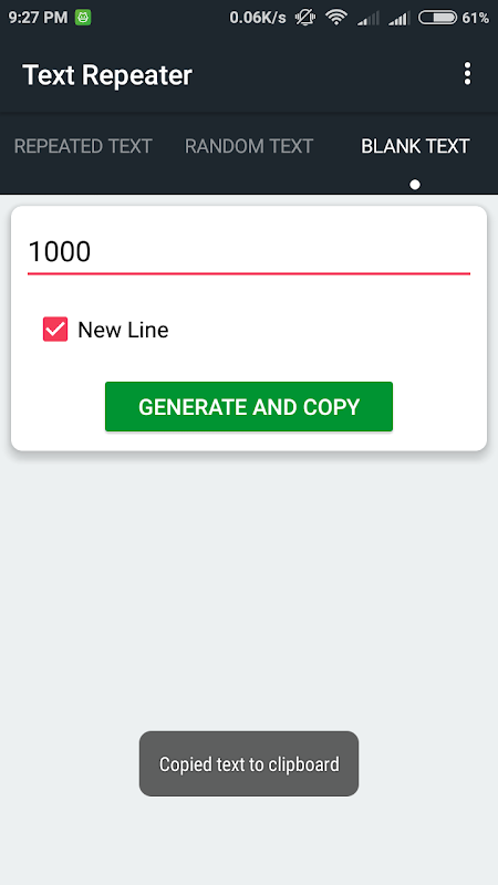 Using this application you can send the same message at multiple times. This app is low size APK. It is one kind of message repeater to send message repeatedly, and also you can set your repetition limit with new line text repetition. Very easy to use and required few click for your message repetitions.