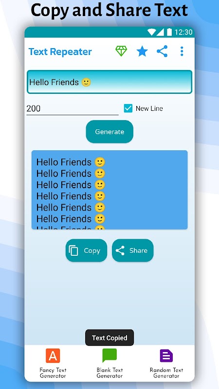 📋 คัดลอกและแชร์ทันที – แตะเพียงครั้งเดียวคัดลอกหรือแชร์ข้อความที่คุณสร้างได้ทุกที่!