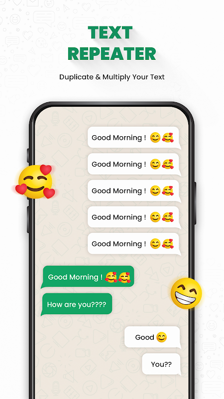 ✔️ Emoji Sheet: Text Repeater มาพร้อมกับไลบรารีอิโมจิมากมาย ทำให้คุณมั่นใจได้ว่าคุณสามารถเข้าถึงอิโมจิยอดนิยมและกำลังเป็นที่นิยมทั้งหมดเพื่อเติมชีวิตชีวาให้กับข้อความและโพสต์โซเชียลมีเดียของคุณ