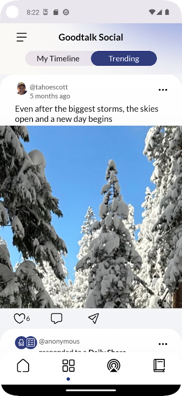 Goodtalk แอปกู้คืนโซเชียลเป็นชุมชนที่สนับสนุนและเต็มไปด้วยทรัพยากรเพื่อช่วยเหลือผู้ที่ได้รับผลกระทบจากความท้าทายในชีวิต ไม่ว่าคุณหรือคนที่คุณรักกำลังต่อสู้กับการเสพติด PTSD ความเครียด ความโศกเศร้า หรือความท้าทายอื่น ๆ มันไม่ได้กำหนดคุณ มาพูดถึงเรื่องนี้กันเถอะ