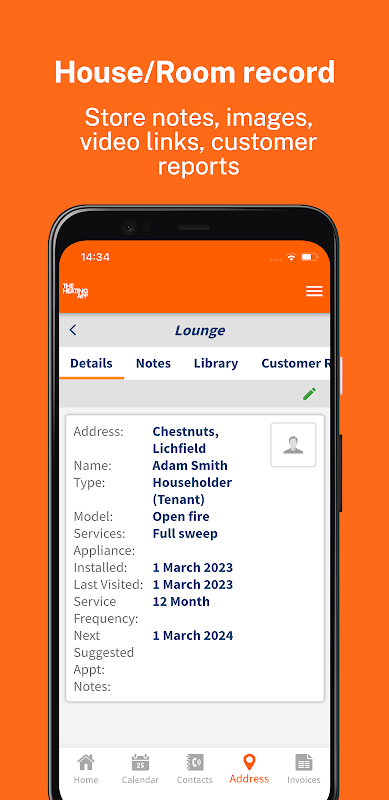 จัดการบันทึกการบริการและใบรับรองได้อย่างง่ายดายซึ่งออกแบบมาสำหรับวิศวกรระบบทำความร้อนโดยเฉพาะ จัดเก็บสื่อและเอกสาร ดูรายงานที่ส่งถึงลูกค้า และจัดการการนัดหมายและใบแจ้งหนี้สำหรับแต่ละห้อง