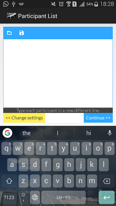 Create the participants list and save it or if you already have one list, open it from the app interface