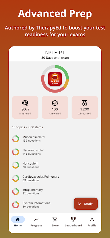 The TherapyEd Mobile App เป็นคู่หูมือถือที่คล่องตัวที่สุดของคุณเพื่อช่วยให้คุณผ่านการสอบ NPTE-PT, NPTE-PTA และ SLP PRAXIS Study-Pack แต่ละชุดประกอบด้วยคำถามฝึกปฏิบัติที่ครอบคลุมหลายร้อยข้อพร้อมคำอธิบายโดยละเอียดซึ่งรวมอยู่ในการทบทวนและคู่มือการศึกษาของ TherapyEd คุณสามารถสร้างเซสชันการศึกษาที่กำหนดเองตามความเชี่ยวชาญของคุณและกรองตามโดเมนหลัก หมวดหมู่ และกลยุทธ์การให้เหตุผล นอกจากนี้ คุณยังติดตามความคืบหน้าและรู้ว่าควรปรับปรุงส่วนใดในแบบเรียลไทม์ขณะตอบคำถาม