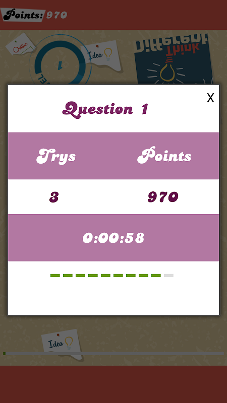 Think Different is Puzzle games. It is very challenging game since it's provide different question and trick. the game provide ten levels and if you pass them you really have a great mind and logic