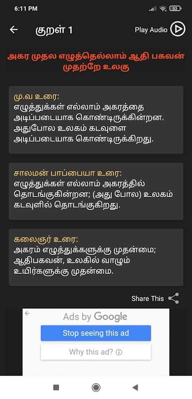 ภาษาทมิฬ Thirukkural (தமிழ் திருக்குறள்) - เสียง Thirukkural พร้อมความหมาย