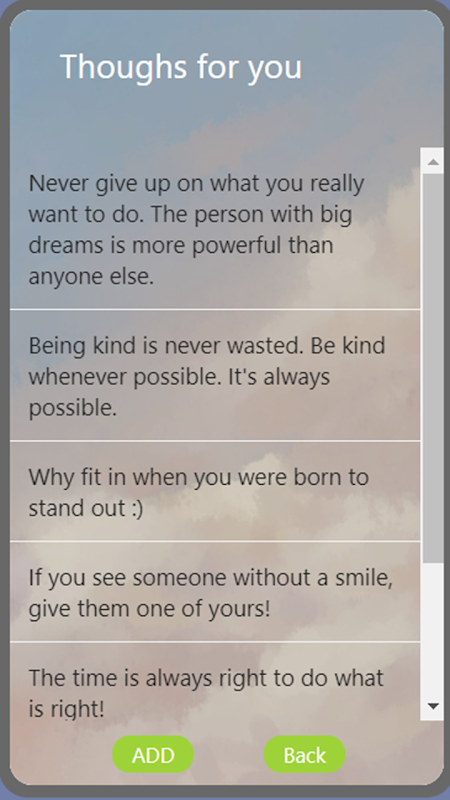 This APP gives positive thoughts when ever you open the APP.