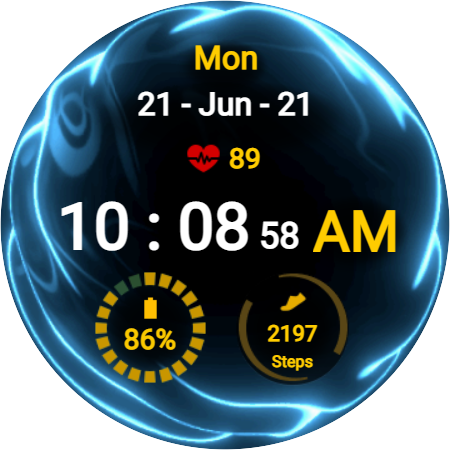 หน้าปัดนาฬิกาดิจิตอลอย่างง่ายสำหรับ Wear OS พร้อมธีมของเหลวเคลื่อนไหว เพียงชำเลืองมองที่หน้าปัด คุณจะสามารถเห็นข้อมูลสำคัญ (วันที่ เวลา อัตราการเต้นของหัวใจ จำนวนก้าว และเปอร์เซ็นต์ของแบตเตอรี่) พื้นหลังแบบเคลื่อนไหวสร้างเอฟเฟกต์เจ๋ง ๆ ที่จะทำให้คุณโดดเด่นกว่าที่อื่น นอกจากนี้ สีพื้นหลังแบบเคลื่อนไหวและสีของตัวแสดงสถานะแบตเตอรี่จะเปลี่ยนไปตามเปอร์เซ็นต์ของแบตเตอรี่ ช่วยให้คุณทราบได้ทันทีว่าระดับแบตเตอรี่อยู่ที่ใดโดยไม่ต้องเน้นรายละเอียด ในทำนองเดียวกัน จำนวนก้าวจะสว่างเป็นสีเขียวเมื่อคุณบรรลุเป้าหมายรายวัน รองรับโหมดแสดงผลตลอดเวลาด้วยรูปแบบ 12 และ 24 ชั่วโมงที่ออกแบบมาสำหรับ Wear OS และออกแบบมาสำหรับคุณ