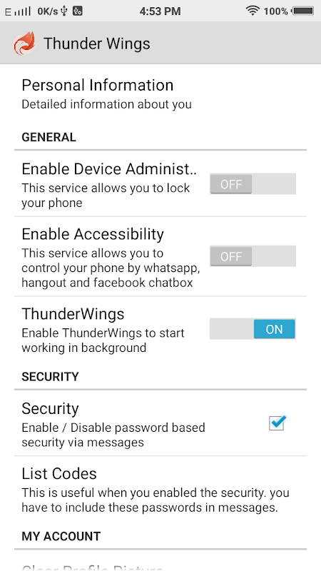 ThunderWings is an android application, it provides a set of services that can be controlled by another mobile phone.