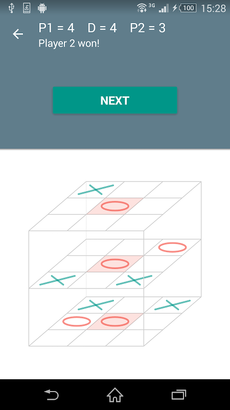 - the 3x3x3 should be visualized as a cube (check the screenshots for some winning possibilities)