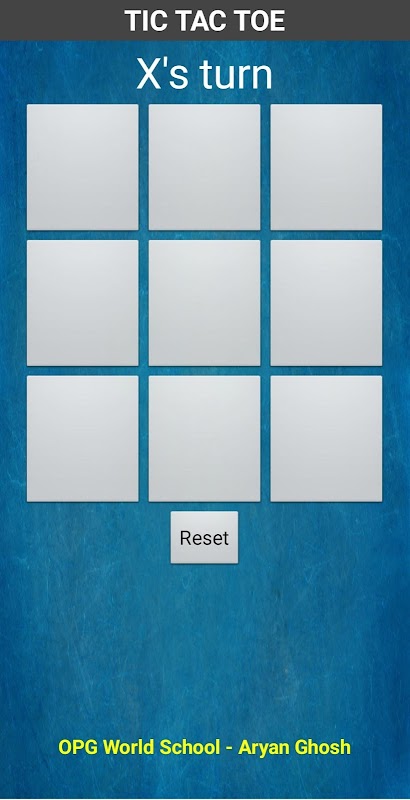 Tic Tac Toe Game, is made by Aryan Ghosh of OPG World School trained by Raspbians.com.