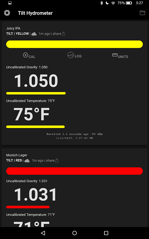 แอพ Tilt™ hydrometer สำหรับ Android 5-13 (สามารถดาวน์โหลดได้จากเว็บไซต์ของเรา)