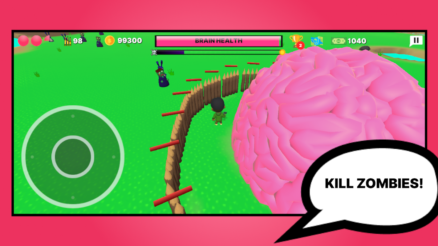 มีสมองขนาดใหญ่ตั้งอยู่ตรงกลางแผนที่ คุณต้องปกป้องมันจากซอมบี้ที่เข้ามา!