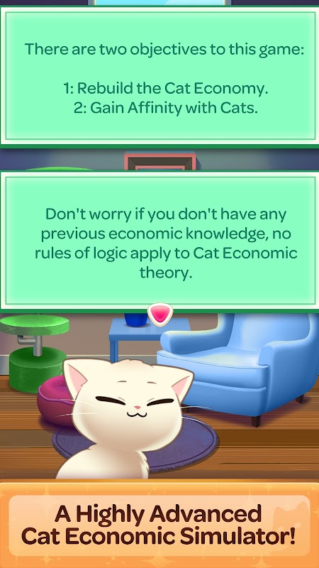 เศรษฐกิจของแมวพังทลายและเป็นโชคชะตาของคุณที่จะแก้ไข ช่วยให้แมวเพิ่มสถิติเพื่อให้มีคุณสมบัติสำหรับงานแมวแบบดั้งเดิมเช่น Spy, Abomination และอินเทอร์เน็ต สัมผัสประสบการณ์เกมจำลองเศรษฐกิจแมวที่ทันสมัยและสมจริงที่สุดในโลก