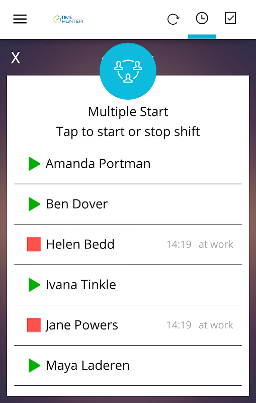 Time Hunter is a cloud-based time clock that allows you and your employees to clock in and out from work and selecting the active task or project they doing right now.