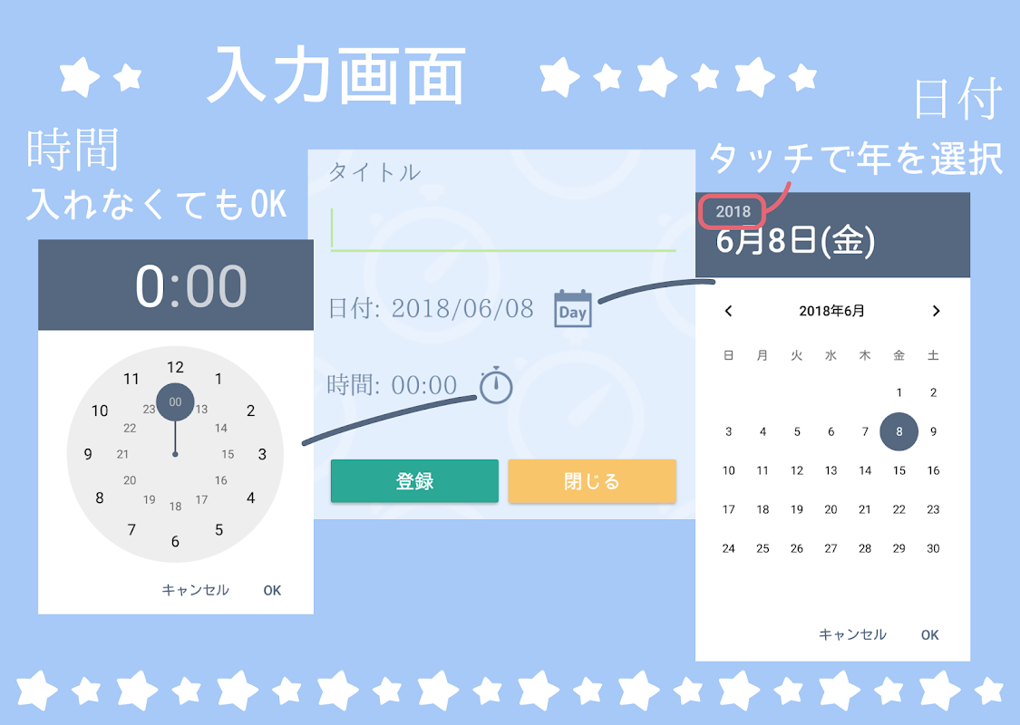 ·ในหน้าจอรายละเอียด, วันที่, ชื่อ, เวลาที่ผ่านไป / วัน / เดือน / ปีครบรอบปีที่แสดง