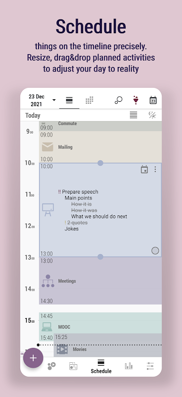 ใช้เครื่องวางแผนเวลา – แอปพลิเคชั่นที่ช่วยคุณเพิ่มความสามารถในการทำงาน จัดการตารางในแต่ละวัน สัปดาห์และเดือนรวมถึงแต่ละปีของคุณและให้โอกาสคุณในการพัฒนาทักษะการวางแผนและเพิ่มความแข็งแกร่งและความสามารถของคุณ เพิ่มประสิทธิภาพและความสามารถในการทำงานในด้านต่างๆของชีวิต!