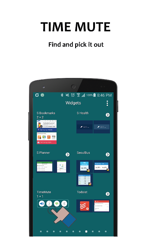 1. Desktop > Long-click > Widgets button > find Time Silent icon on a list