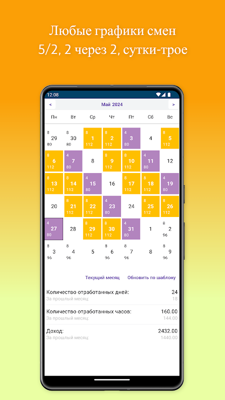 บันทึกชั่วโมงทำงานและค่าล่วงเวลาในปฏิทินตารางเวลาทำงานที่ใช้งานง่าย และแอปพลิเคชันจะคำนวณค่าจ้างและรายได้ของคุณโดยอัตโนมัติ รองรับตารางกะทำงานยอดนิยม เช่น "2 ถึง 2", "สามวันต่อวัน" และตารางกะทำงานอื่นๆ