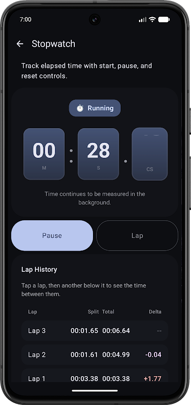 TimeTools รวบรวมเครื่องมือจับเวลาคุณภาพระดับมืออาชีพ 6 อย่างไว้ในแอปเดียวบนระบบ Android ที่ใช้งานง่าย ช่วยให้คุณคำนวณกำหนดเวลาได้อย่างแม่นยำ จดจ่ออยู่กับงาน และไม่พลาดช่วงเวลาสำคัญ (Golden Hour) แอปนี้ผสานความแม่นยำของนาฬิกาจับเวลา 10 มิลลิวินาที เข้ากับธีมที่ผ่อนคลาย การสั่นตอบสนองที่สมจริง และทางลัดการแจ้งเตือนที่ช่วยให้คุณทำงานได้อย่างมีประสิทธิภาพแม้ในขณะที่หน้าจอปิดอยู่