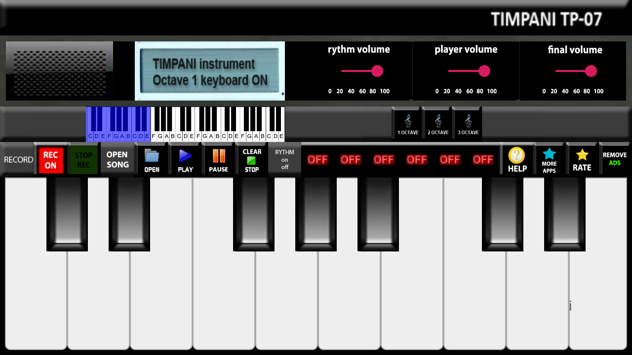 Timpani is android application designed for Android phones and tablets . Timpani contains two timpani instruments . You can play two timpani instruments with two virtual sound keyboard .